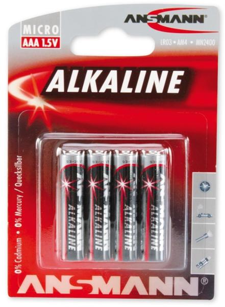 Alkáli elem Ansmann AAA, LR03Típus: alkáli elem 1,5 VMéret AAA,  Csomagolás 4 darab