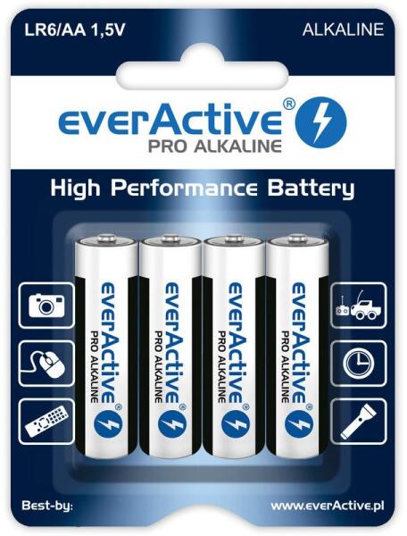everActive 4 darab R6 AA alkáli elemkészlet, everActive Pro Alkaline