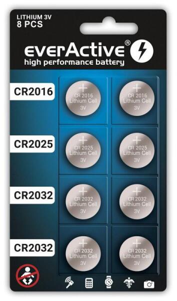 everActive CR2032 CR2025 CR2016 lítium gombelem készlet 8 db