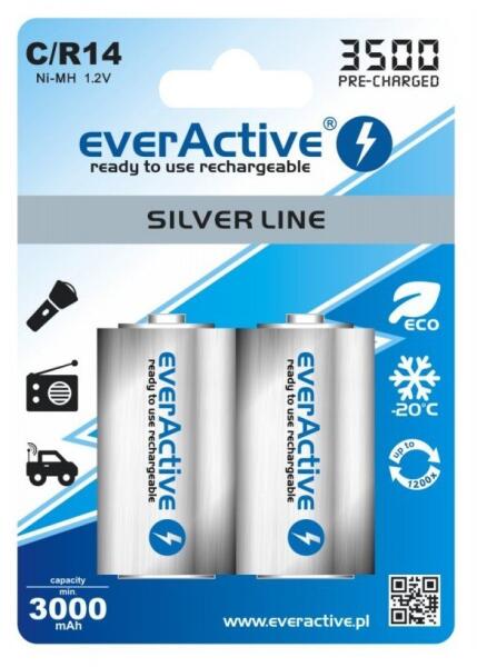 everActive r14 c-cell újratölthető elem készlet, 2 db, 3500mah 1.2v nimh silver line (BL154-1x)