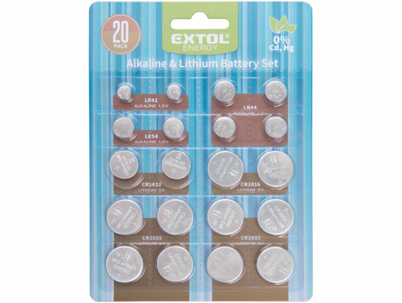 Extol gombelem készlet 20 db, Lítium 3V és alkáli 1, 5V; hosszú étettartam, bliszteren (42057) - megatool