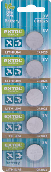 Extol gombelem klt. 5 db, Lítium, 3V, méret: (CR2025); hosszú élettartam, bliszteren