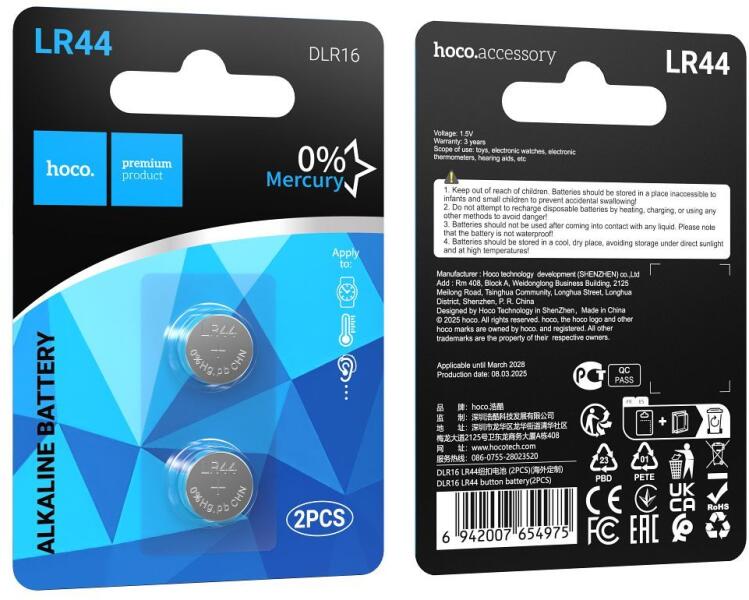 Megjegyzés: Ez a leírás automatikusan le lett fordítva magyarra. A Hoco egy népszerű GSM, audio és szórakoztatóelektronikai kiegészítő márka, széles töltők, kábelek, tartók, fejhallgatók, valamint okosórák, táblagépek, kamerák és háztartási gépek választékával. Modern dizájnjával és jó minőségével, vonzó áraival tűnik ki. Mi vagyunk a Hoco márka kizárólagos forgalmazói – a tanúsítvány megtekinthető [itt]. A Hoco DLR16 egy kiváló minőségű, két darab LR44 gombelemből álló készlet, amelyet alacsony fogyasztású eszközökkel való működésre terveztek. Ideálisak órákhoz, számológépekhez, távirányítókhoz, játékokhoz, érzékelőkhöz és hallókészülékekhez. Stabil feszültségüknek és alacsony önkisülésüknek köszönhetően hosszú ideig megbízható áramellátást biztosítanak. Tartós anyagokból készültek, az elemek lezártak, ami biztonságot és hosszú távú működést biztosít. A kompakt, kétrészes készlet lehetővé teszi a könnyű cserét bármikor. Főbb jellemzők: Stabil 1,5 V-os feszültség – biztosítja az eszközök folyamatos működését Alacsony önkisülés – hosszú ideig megőrzi a teljes teljesítményt Szivárgásállóság – védi a berendezéseket és kiküszöböli a károsodás kockázatát Népszerű LR44 formátum – számos eszközzel kompatibilis Két elemből álló készlet – tartalék cseréhez Műszaki adatok: Elem típusa: LR44 (alkáli gombelem) Modell: Hoco DLR16 Feszültség: 1,5 V Átmérő: 11,6 mm Vastagság: 5,4 mm Készletben lévő mennyiség: 2 darab Alkalmazások: órák, számítógépek, távirányítók, játékok, érzékelők, hallókészülékek