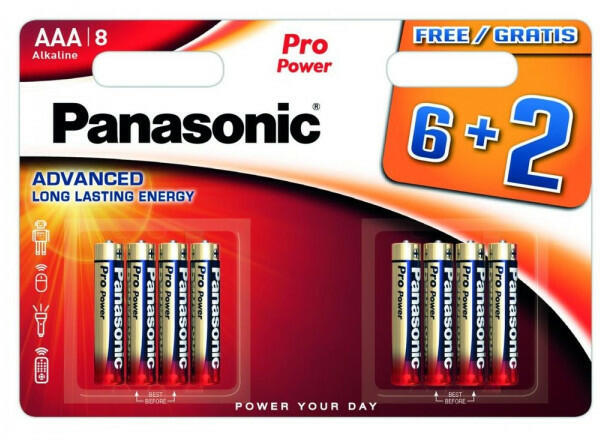 Panasonic AAA/mikro szuper tartós alkáli elem 1, 5 V (8 db) (LR03PPG-8BW-6-2F)