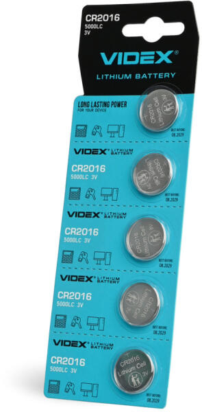 Videx CR2016 3V lítium gombelem, 5 db-os bliszteres kiszerelésben (VIDBAT0155)