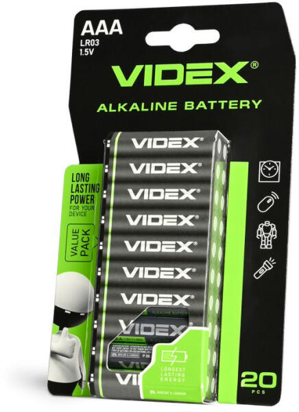 Videx LR03 AAA alkáli elemek 1, 5 V, 20 db-os bliszteres kiszerelésben (VIDBAT0035)