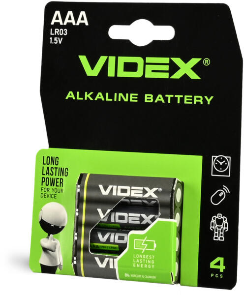 Videx LR03 AAA alkáli elemek 1, 5 V, 4 db-os bliszteres kiszerelésben (VIDBAT0040)